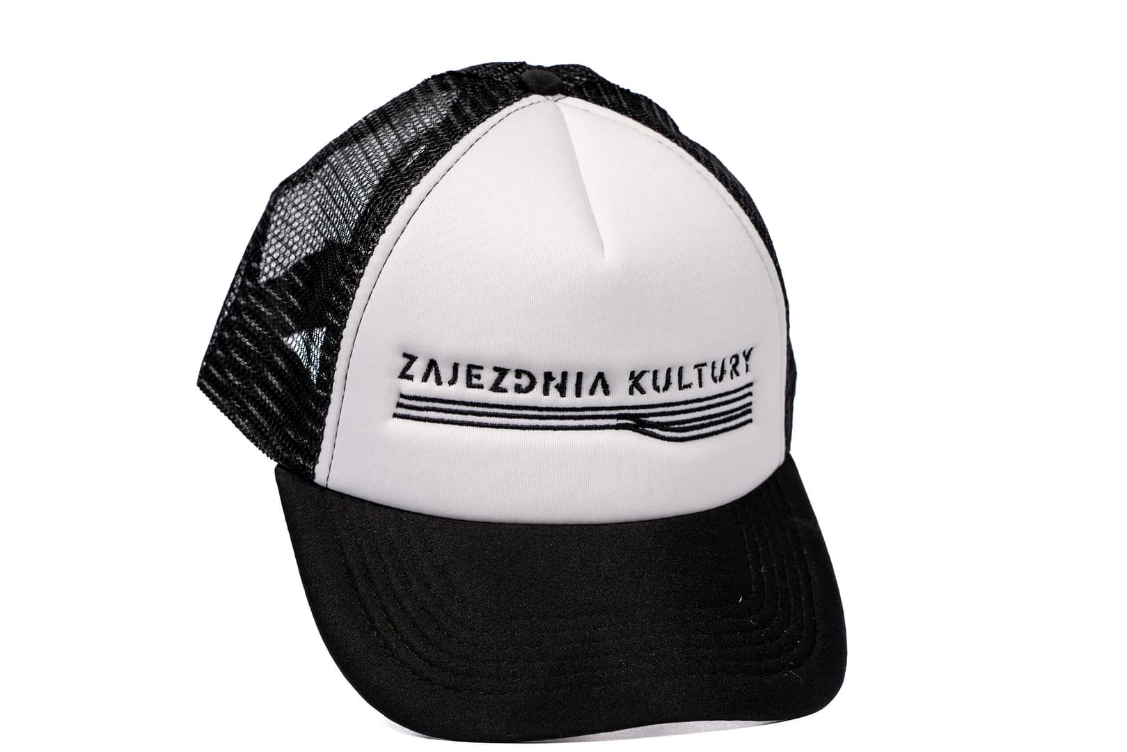 Spersonalizowana czapka „Zajezdnia Kultury” to elegancki i stylowy gadżet, który łączy prostotę z wyrazistym brandingiem. Czapka jest utrzymana w klasycznych, kontrastowych kolorach: czerni i bieli. Przednia część jest wykonana z białego materiału, na którym widnieje czarny, haftowany napis „Zajezdnia Kultury”. Logo zawiera również delikatny, graficzny element w postaci torów kolejowych, które dodają nowoczesnego, minimalistycznego charakteru.